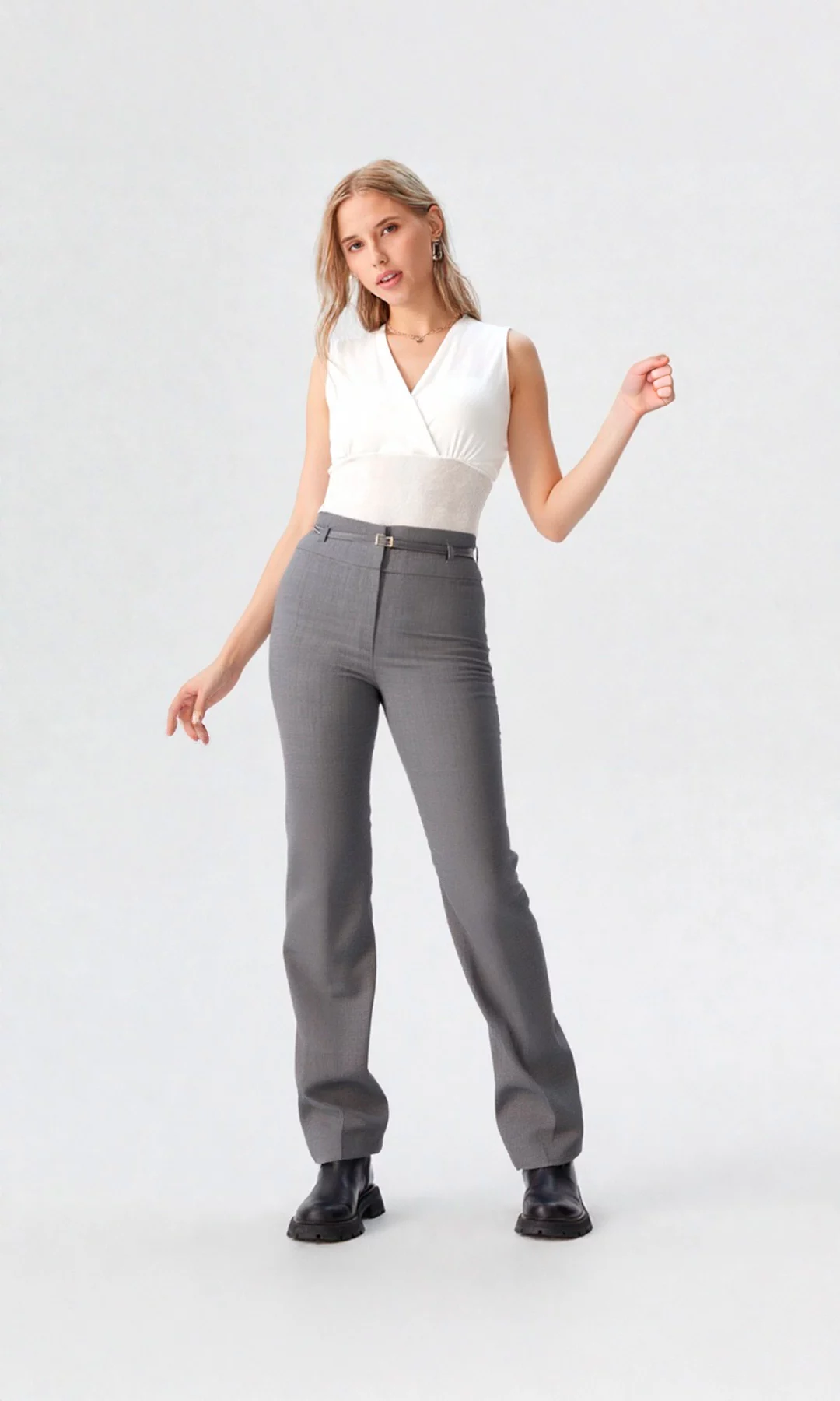 Pantalón para mujer, elegante, unicolor, pretina ancha con cierre invisible y bota recta.