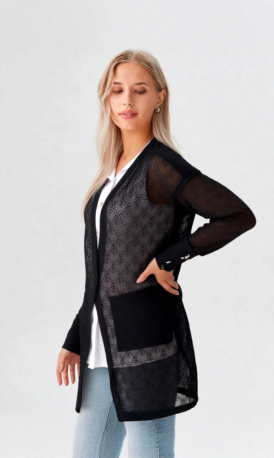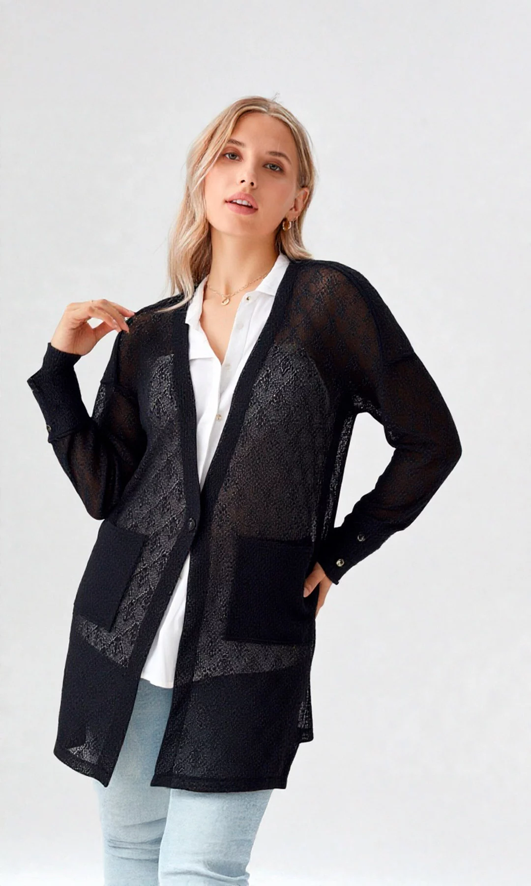 Ruana mujer manga larga unicolor