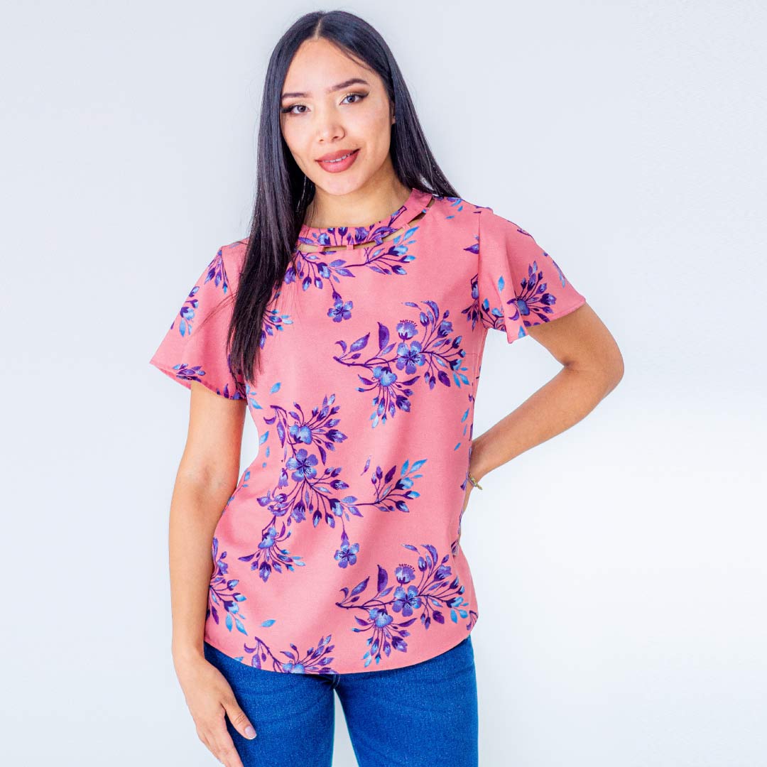 Blusa formal para mujer, manga corta, con estampado de flores, escote redondo con diseño, con gota en posterior como sistema de cierre. Encuentra en LYH las mejores blusas para mujer, diseño, comodidad y estilo perfecto. Haz que tu historia sea grandiosa con LYH moda. Descubre todo lo que tenemos para ti, en nuestra tienda virtual www.lyh.com.co
