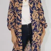 Kimono para mujer estampado con charretera en manga 3/4 con botones, abierto en frente. Aberturas en costados de cadera para mejor confort.
